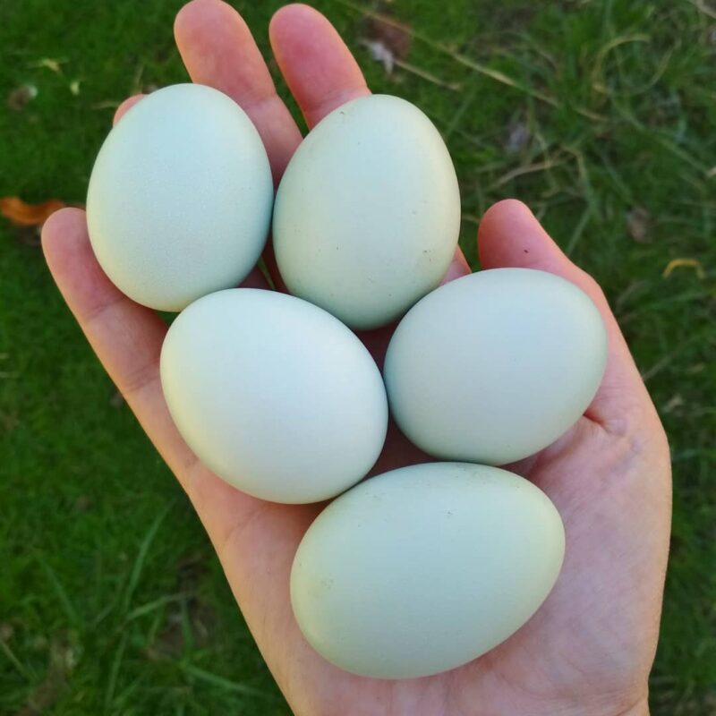 - Egg colour: a mix of blue, green, olive, brown and spotted eggs, depending on the individual hen’s genetics.