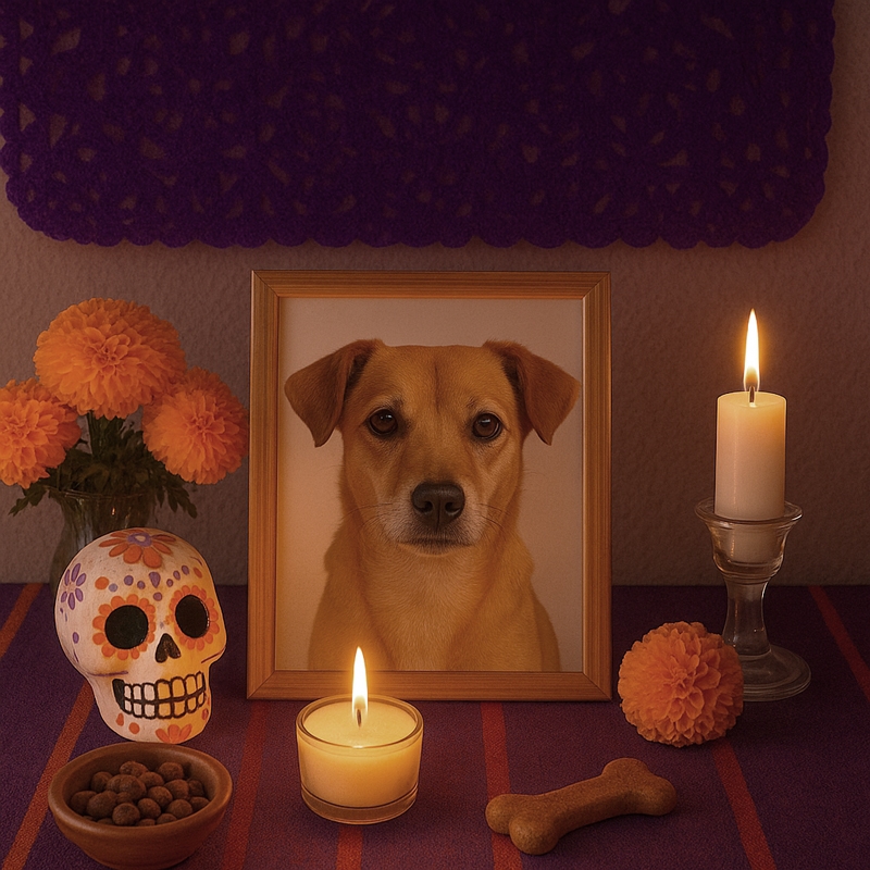 Families often prepare small ofrendas, or offerings, for their pets. These may include a photo, a treat, a toy, a collar, or even a small bowl of water to refresh their spirit after the long journey from the other side.