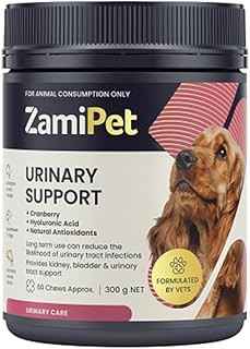 Aussie brands to consider: PAW by Blackmores Urinary Health Chews, Natural Animal Solutions® Urinary Support, Vetalogica Canine Urinary Tract Support, ZamiPet Urinary Support, Now Pets Urinary Support.