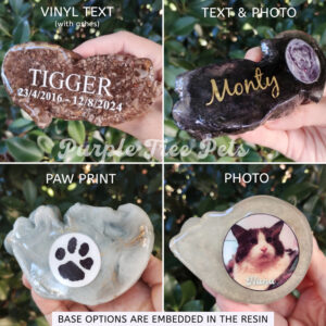 - We can also include vinyl wording where possible by adding your pet’s name, dates, or a special message. All sealed with a durable clear coat of resin.