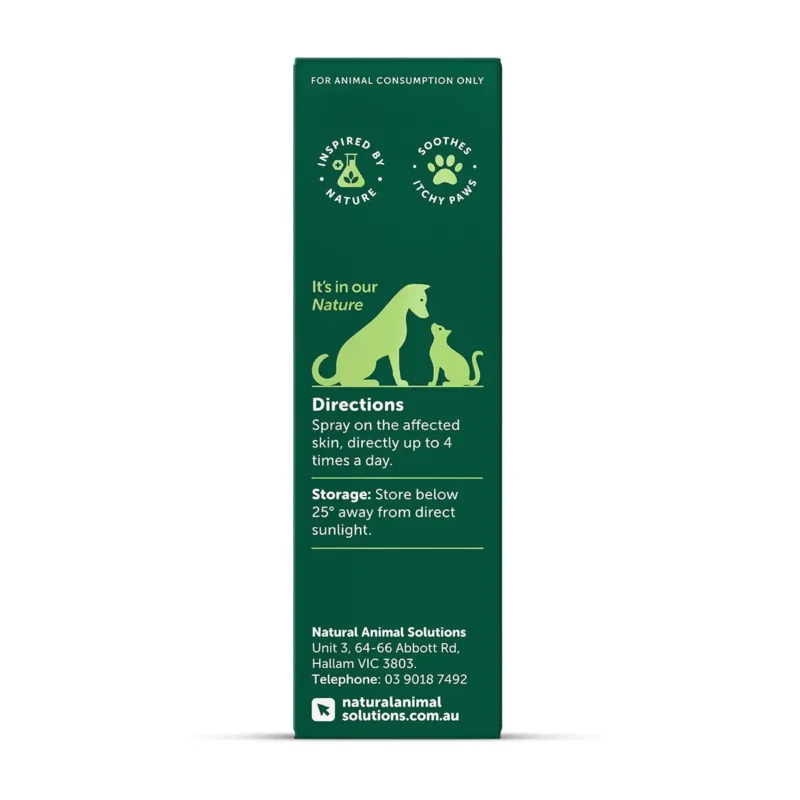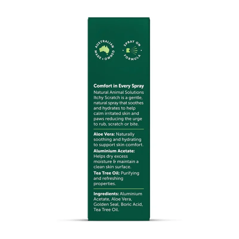 Natural Animal Solutions Itchy Scratch spray is a gentle, natural spray to help maintain skin comfort and support healthy-looking paws and coat. Ideal for pets that lick or scratch.
